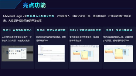 GMVisual Logic 2.0:实现协议组件开发效率的飞跃。支持设备免配置接入、逻辑自动校错、画布自动整理、协议组件开发与在线调试等功能,结合全程可视化操作与配套教学视频,助力开发者快速掌握复杂任务,显著提升开发效率。