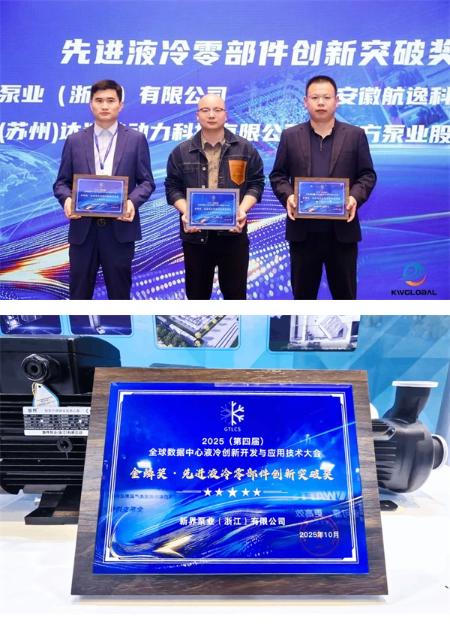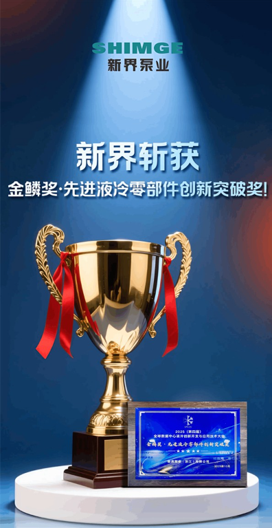 在大会同期举办的金鳞奖-2025数据中心液冷科技创新评选活动中,新界凭借突出的技术创新能力和液冷泵产品性能,成功斩获“金鳞奖·先进液冷零部件创新突破奖”。这份荣誉不仅是行业对新界技术实力的权威认可,更是激励新界持续创新前行的动力。