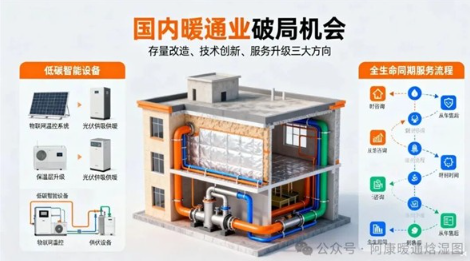 当下国内暖通业虽面临“内卷”压力,但在政策导向、技术革新和市场需求迭代下,并非无路可走——核心破局机会集中在“存量改造挖潜”“技术赛道创新”“服务模式升级”三大方向,每个方向都有明确的政策支撑和市场空间!