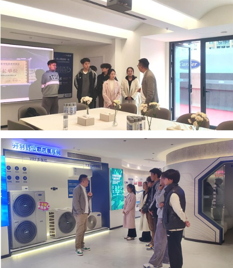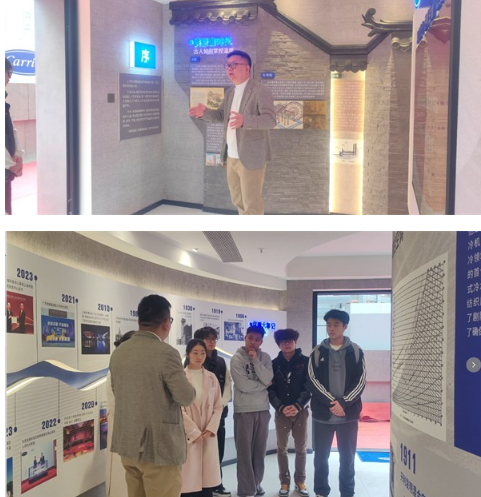 随后,王总为同学们带来了一堂生动的暖通专业课,从空调技术的发展历史,到前沿的、绿色的、智能的暖通系统,馆内丰富的陈列与详实的讲解,为同学们勾勒出一幅清晰的行业全景图。大家饶有兴致地观摩,了解系统原理,书本上的理论在此刻化为触手可及的科技实体,激发了浓厚的探索兴趣。
