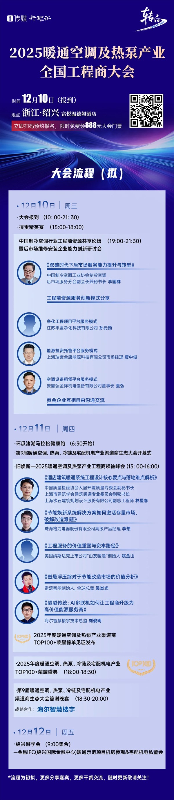 在12月10日晚中国制冷空调行业工程商资源共享论坛与12月11日下午“旧焕新”--2025暖通空调及热泵产业工程商领袖峰会中,在暖通空调热泵领域有着丰富经验的嘉宾将会结合行业发展趋势和自己的总结,从不同的角度进行分享,带领大家打开新思路、探索新蓝海、找到新机会,给与会厂商呈现行业精彩纷呈的视觉和听觉的盛宴。