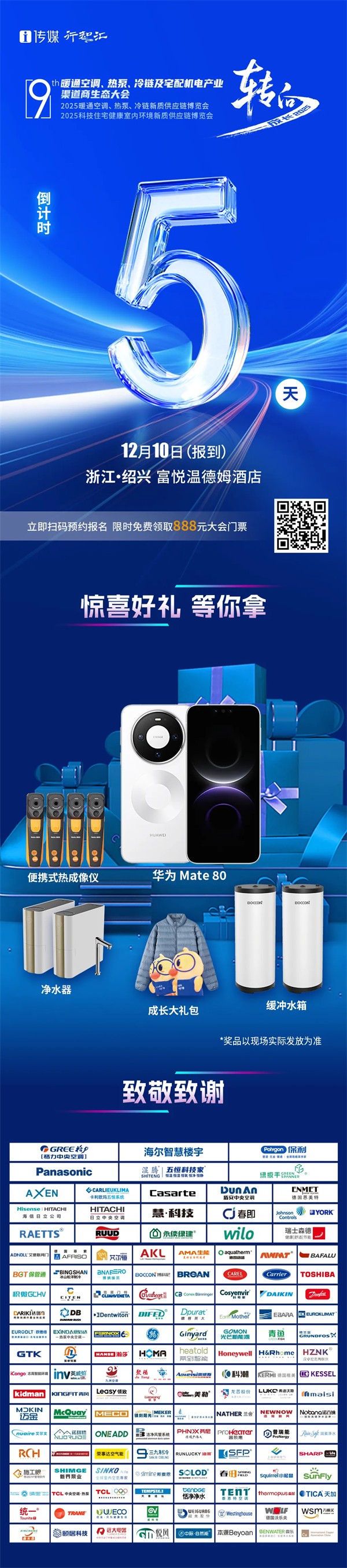 距离2025年第9届暖通空调、热泵、冷链及宅配机电产业渠道商生态大会仅剩五天时间,现场更有多重惊喜好礼等你拿!来绍兴,一起交流进步!
