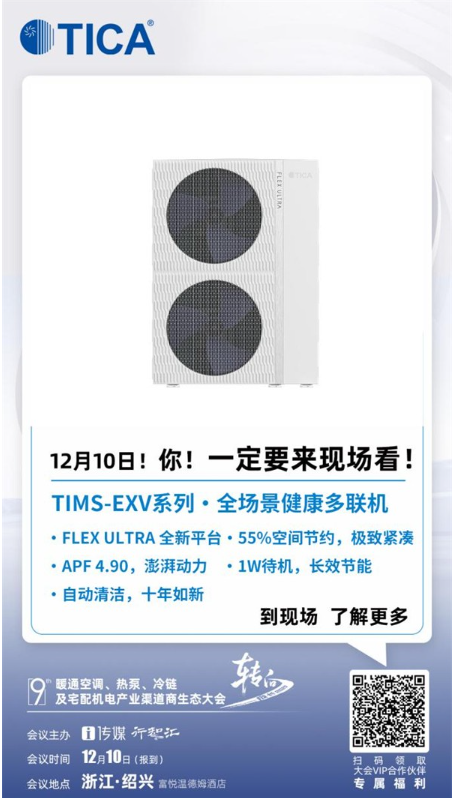在暖通空调行业向高效化、健康化发展的关键阶段,系统能效提升与室内环境品质已成为衡量建筑质量的重要指标。随着市场对建筑环境要求的不断提高,暖通系统不仅需要实现精准温控,更要兼顾节能效益与健康保障。12月10日至12日,以“转向·成长”为主题的第9届暖通空调、热泵、冷链及宅配机电渠道商生态大会将在浙江绍兴富悦温德姆酒店举行。天加将展示其在系统能效与健康净化环境协同创新方面的技术成果,呈现天加解决方案在节能改造与品质提升中的综合价值。