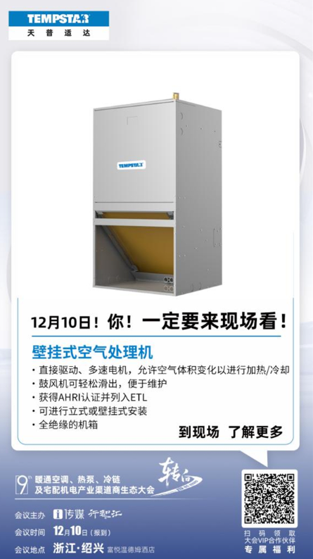 在五恒系统日益成为高品质建筑环境核心追求的背景下,系统组成设备的专业化与可靠性成为实现整体性能的关键基石。随着市场对室内环境精准调控要求的不断提升,具备稳定性能与灵活适配能力的核心设备正获得更多关注。12月10日至12日,以“转向·成长”为主题的第9届暖通空调、热泵、冷链及宅配机电渠道商生态大会将在浙江绍兴富悦温德姆酒店举行。天普适达将携其壁挂式空气处理机亮相本次大会,展示其为五恒系统量身打造的关键产品解决方案。