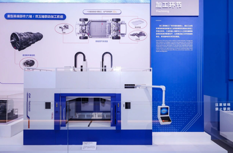 同样备受瞩目的,还有荣获2025年日内瓦国际发明展金奖的格力高速双五轴龙门加工中心的1:3.6比例微缩模型。该数控机床采用直驱方案,光栅尺全闭环控制,最高运行速度120m/min,最大加速度1.1mm/s2,11轴联动加工,一次装夹可完成汽车前舱、电池托盘、后地板等车身部件的六面加工,生产效率较传统方案提升30%以上,推动了国产高端五轴机床在关键领域落地应用。