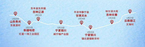 本次“‘暖冬行’直播季”活动将以“穿越冬天的温暖”为主题,覆盖从东部沿海到西部边陲的多元地域,直线距离跨越12000公里。