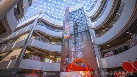 上海协格机电科技股份有限公司为其提供中央空调节能系统解决方案。地下室、1~4层、影院三大系统独立运行,可根据各区域营业时间、人流密度灵活启停与调节负荷,避免传统中央空调“一开全开”的能源浪费,显著降低购物中心整体运营能耗。在公共区域采用组合式空调箱,凭借模块化设计可灵活组合制冷、制热、过滤等功能段,精准匹配购物中心人流密集、空间开阔的使用场景,实现温湿度的稳定控制。