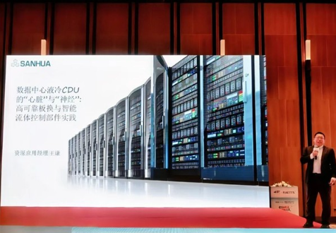 本次峰会聚焦液冷技术及市场趋势、AI芯片液冷设计、CDU及组件创新等核心议题,三花由资深应用工程师王谦现场分享液冷CDU核心技术实践与技术探讨,为大规模数据中心的高效散热与算力进阶提供关键支撑。