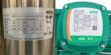 ⚠️泵头处镌刻“Wilo”标志——清晰、规范的标记是正品出厂的保证