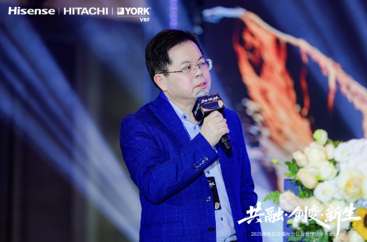在这承上启下的时刻,海信日立华南大区总监王波作为海信日立公司代表 回顾了公司2025年的成绩与布局,并对未来一年的战略进行了展望,明确了家装、工程、新业务及智能化四大方向的发展规划。王波表示,2026年在家装市场将三大品牌协同发力,日立全面落地全屋全感3.0,海信提升产品性价比以引流拓客,约克VRF巩固技术领先优势;在工程市场深化“七加二”战略,聚焦七大行业与两大业务,在数据中心、工业、热泵等领域深入布局。长沙智能制造水机生产基地将作为水机业务的新增长点和经营基石,提升产品力与交付保障能力。在智慧楼宇方面将推动暖通系统与AI技术融合,落地一体化的智慧楼宇解决方案。