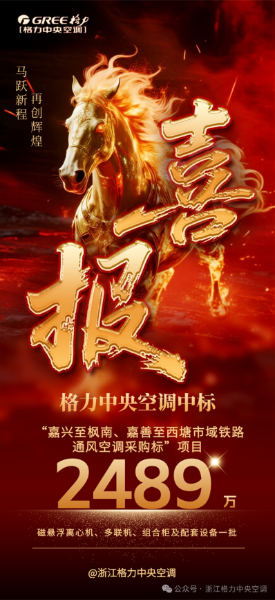 新年伊始,万象更新。这份中标喜讯是格力人奋斗不息的成果。2026年,格力将继续秉持“让世界爱上中国造”的使命,以自主创新为核心动力,在轨道交通、数据中心、高端制造等领域不断突破,用优质产品和服务为祖国基建添砖加瓦。