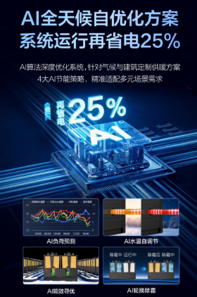 除了硬件性能的硬核升级,该产品的“智慧大脑”是其另一大核心卖点。产品内置自研AI节能算法,能够对系统进行深度优化,并精准适配不同建筑的实际负荷与多元运行场景(如办公楼、商场、工厂等),实现定制化的高效运行。官方资料指出,该AI算法可助力系统运行再省电25%,节能效益显著。